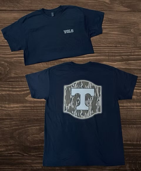 Rep your team with a rugged, outdoorsy twist! This Camo VOLS Tee is the perfect blend of game day spirit and southern style. Featuring a subtle “VOLS” camo print on the front chest and a bold camo shield with the iconic T logo on the back, this shirt is built for fans who love the hunt, the outdoors, and Tennessee pride.