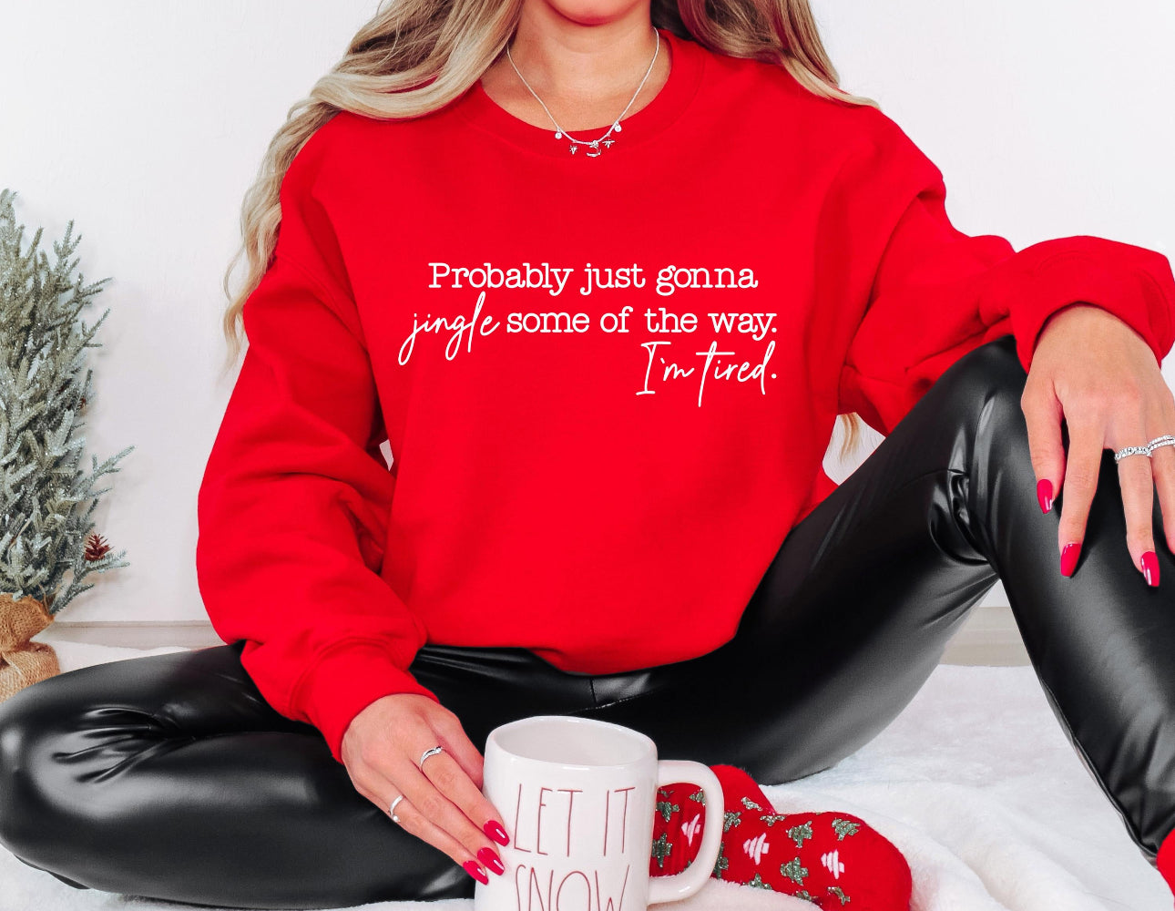 This cozy red sweatshirt is made for the ones juggling Christmas chaos with a little caffeine and a whole lot of holiday spirit. It’s cute, comfy, and hilariously relatable — perfect for wrapping gifts, running errands, or just jingling some of the way through December.